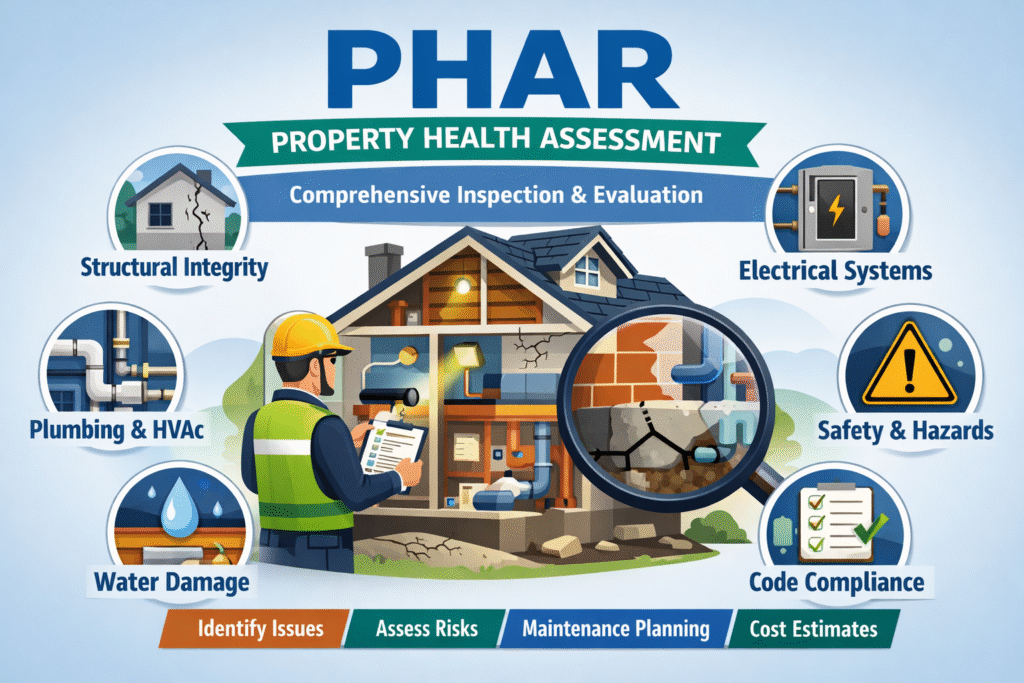 Most property owners only discover problems after something fails. Hidden moisture, aging systems, deferred maintenance, and small defects often go unnoticed until they become expensive emergencies. The PHAR eliminates this uncertainty by providing a structured, system-level evaluation of the property.